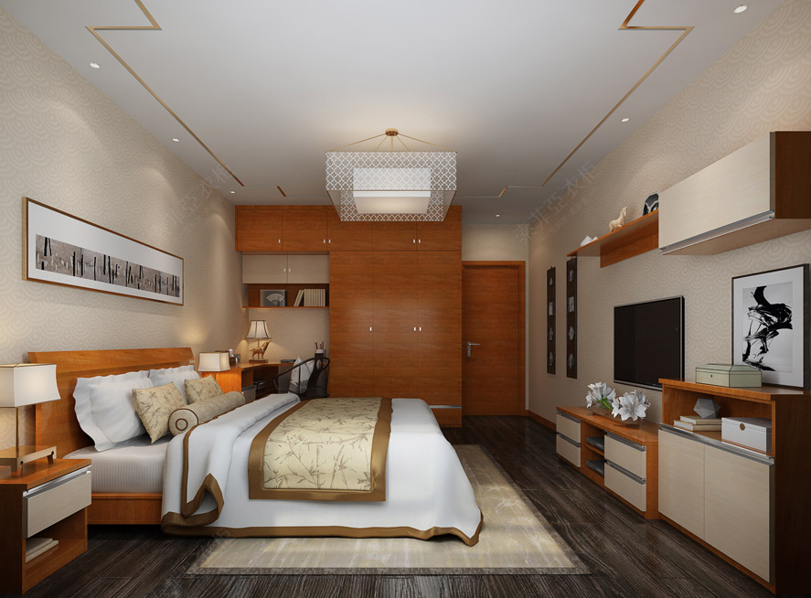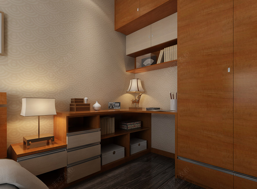 翻板床和书桌样板现代风格节省空间客房书房使用