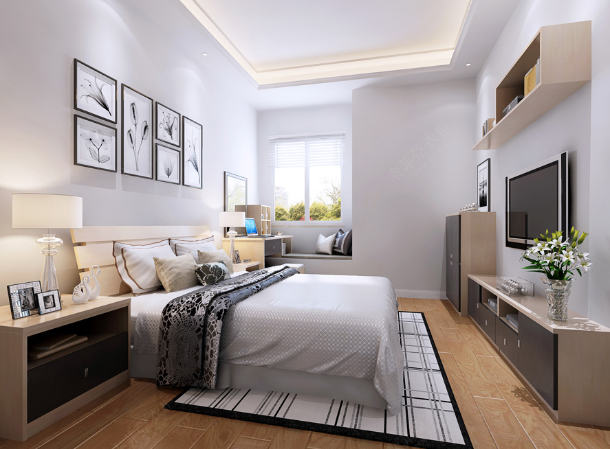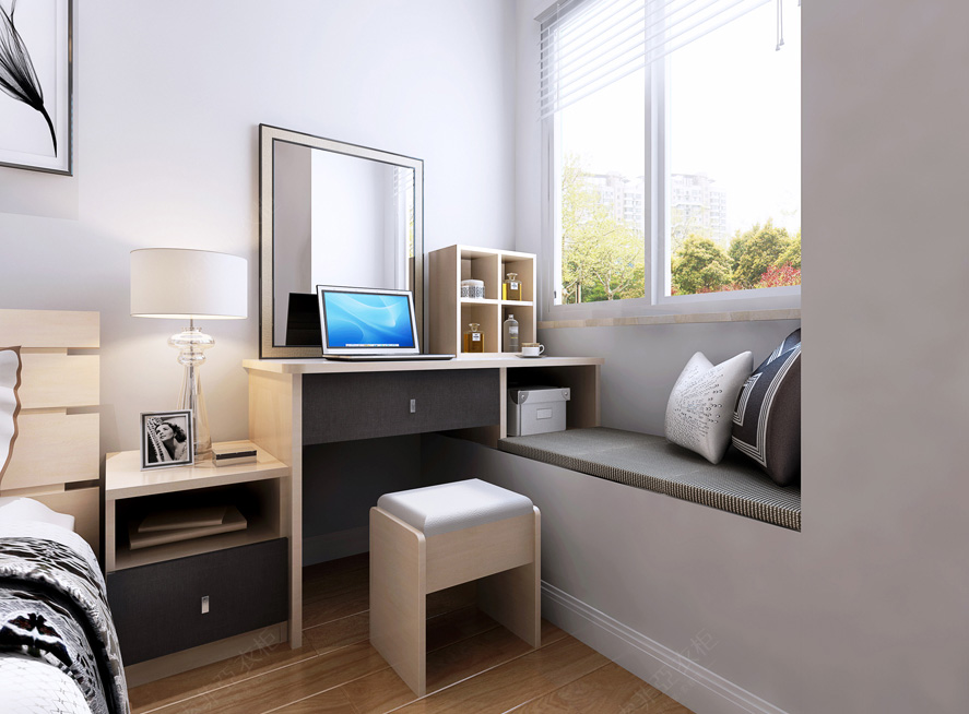 翻板床和书桌样板现代风格节省空间客房书房使用